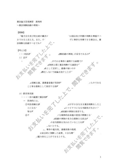 憲法論文答案練習裁判所 憲法判断回避の準則