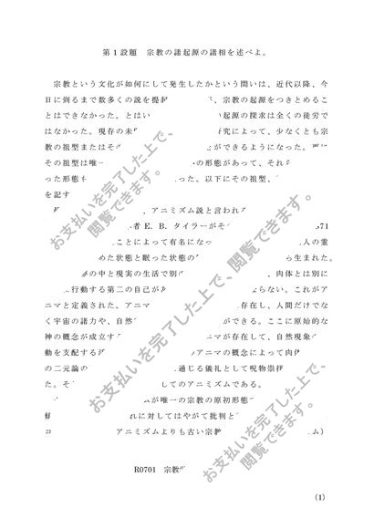 佛大通信 「宗教学概論」「宗教学」第1設題・A評価リポート