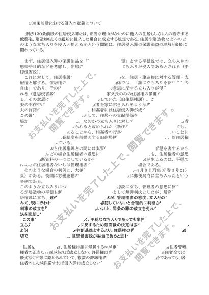 刑法2 第3課題 住居侵入罪における侵入の意義