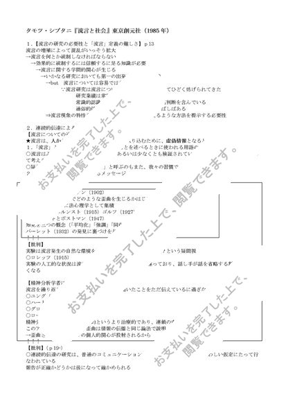 タモツ・シブタニ「流言と社会」まとめ
