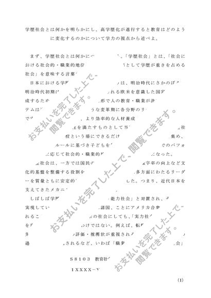 S8103 教育社会学1 リポート (2011年対応)