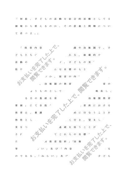 何故、子どもの活動を総合的活動として5領域から捉えるのか、その意義と問題について述べよ。