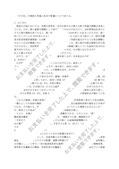 「少子化」の要因と児童に及ぼす影響について述べよ。