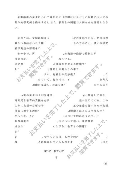 【レポート】教育心理学 第1設題 象徴機能 B判定