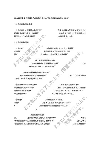総合口座取引の意義とその法的性質および総合口座の内容について
