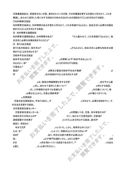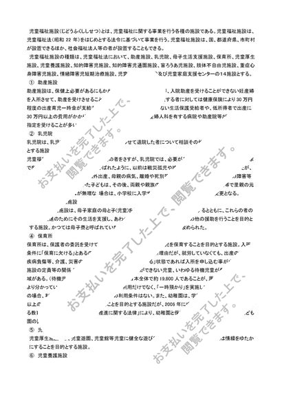 児童福祉 児童福祉とは何か。またそれぞれの施設について簡単に説明せよ。レポート評価【A】