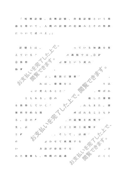 短期記憶、長期記憶、作業記憶という用語を用いて、人間の記憶の仕組みとその特徴について述べよ