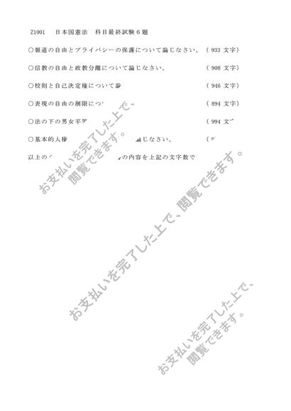 【Z1001】【A6109】【A0015】日本国憲法科目最終試験過去問6題