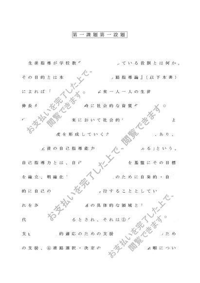 聖徳大学 「生徒指導(進路指導を含む)」第一&第二課題(共にA評価)&テスト問題