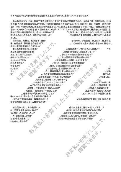 国語 日本児童文学に大きな影響を与えた鈴木三重吉の「赤い鳥」運動についてまとめなさい。レポート評価【A】