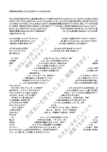 国語 民間伝承を再話したグリム兄弟についてまとめなさい。レポート評価【A】
