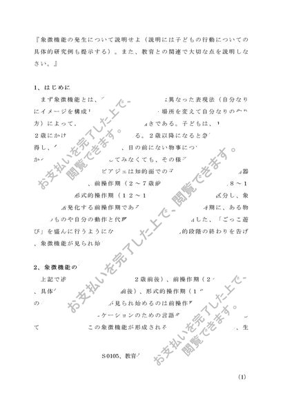 S0105 教育心理学リポート(第1設題) A評価