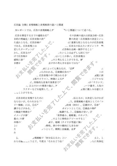 合格レポート!広告論 分冊2 表現戦略と表現戦術の違いと関連
