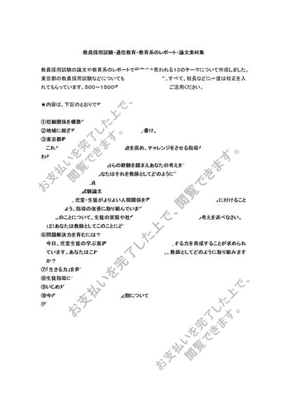 教員採用試験 通信教育 教育系のレポート 論文素材集