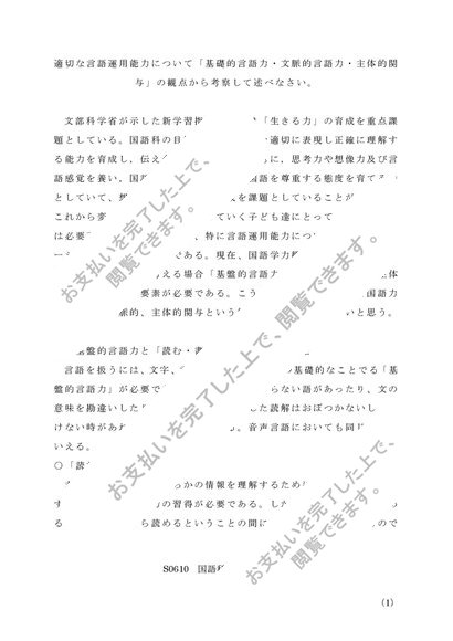 国語科概論_第1設題 レポート 2012年度 A評価