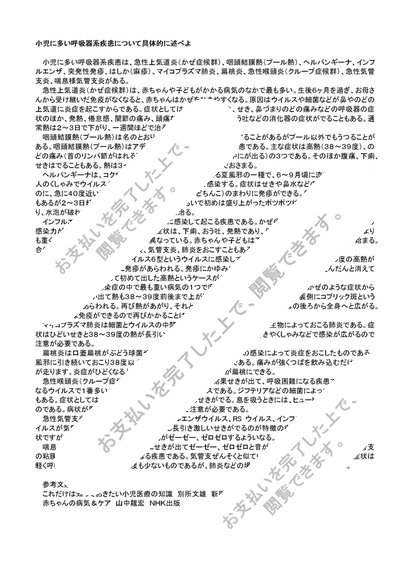 小児保健 小児に多い呼吸器系疾患について具体的に述べよ。レポート評価【A】