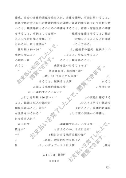 Z1102 教育原論1 リポート(A評価)
