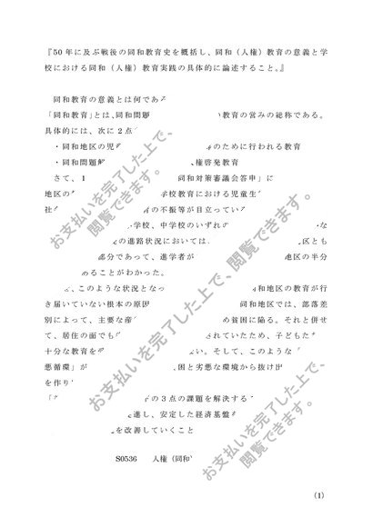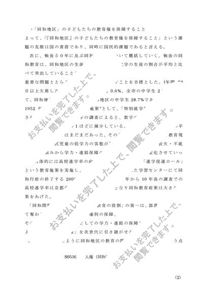 人権(同和)教育 【レポート】 A判定 佛大NEW