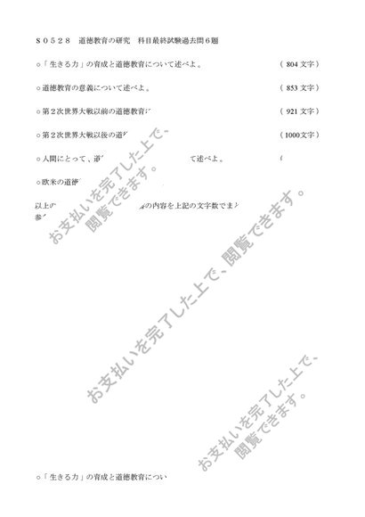 【S0528】【Z0301】【H9106】道徳教育の研究科目最終試験6題セット