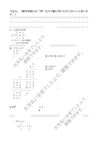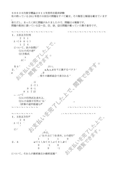 【S0636】代数学概論科目最終試験過去問