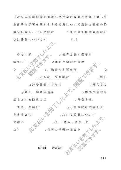 S0104 教育方法学 第1設題 レポート