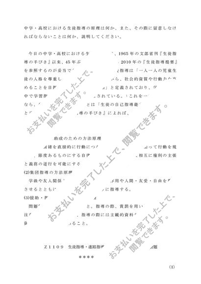 Z1109 生徒指導・進路指導の研究(中・高) リポート(A評価)