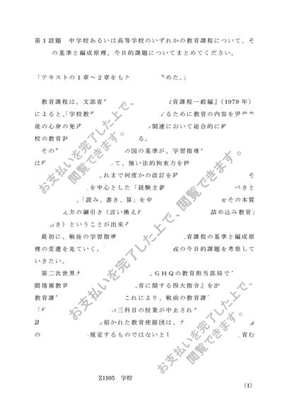 佛教大学通信 S0538・Z1105「学校教育課程論」/Z1114「学校教育課程論(中高)」第1設題・B評価レポート