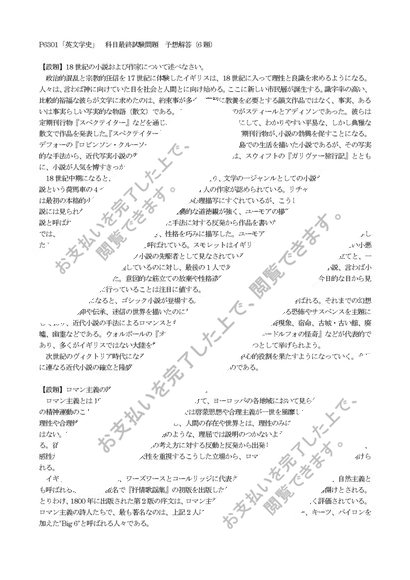 P6301 英文学史 科目最終試験 予想解答集(6題)