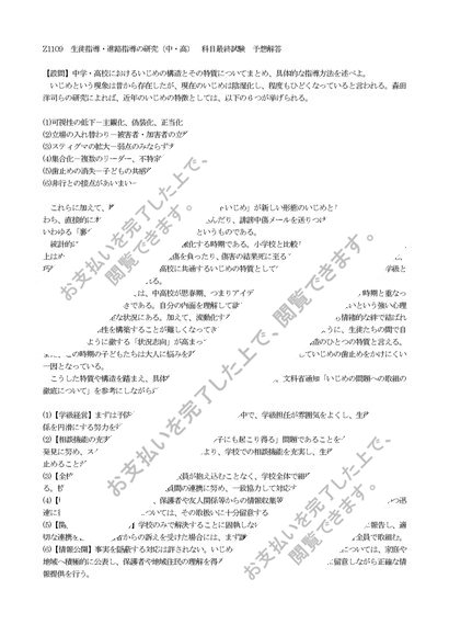 Z1109 生徒指導・進路指導の研究(中・高) 科目最終試験 予想解答集(6題)