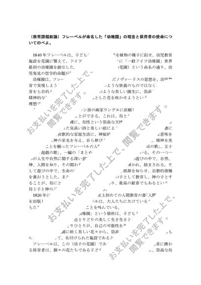 教育課程総論 フレーベルが命名した「幼稚園」の理念と保育者の使命について述べよ。