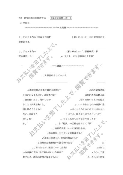752 [初等図画工作科教育法] 合格レポート 2単位分