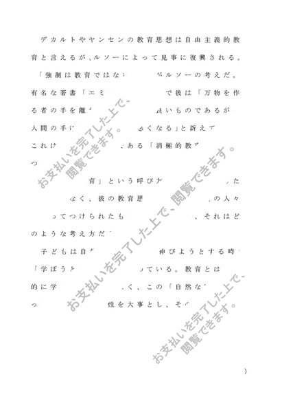 ルソーの教育思想、とりわけ消極的教育について述べよ。