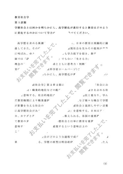 教育社会学 第1設題 S0106 レポート 〔A判定〕