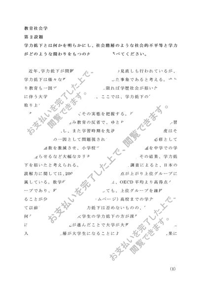教育社会学 第2設題 S0106 レポート 〔A判定〕