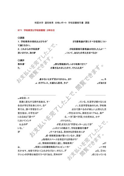 871 学校経営と学校図書館 2単位目 合格レポート