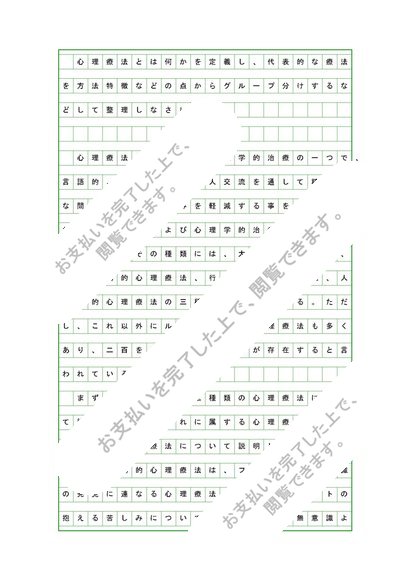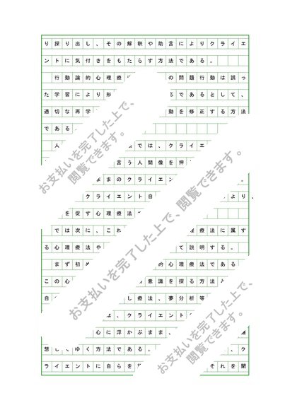 心理療法とは何かを定義し、代表的な療法を方法、特徴などの点からグループ分けするなどして整理しなさい