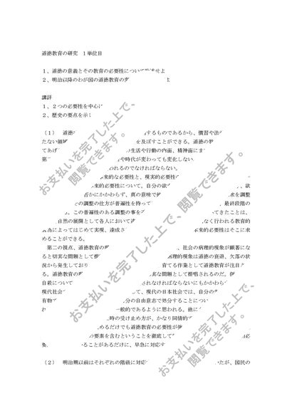 道徳教育の研究、1単位目合格レポート 2011年度 明星大学