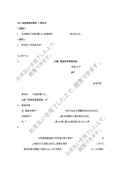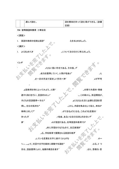 754 初等国語科教育法 合格レポート(2単位分)