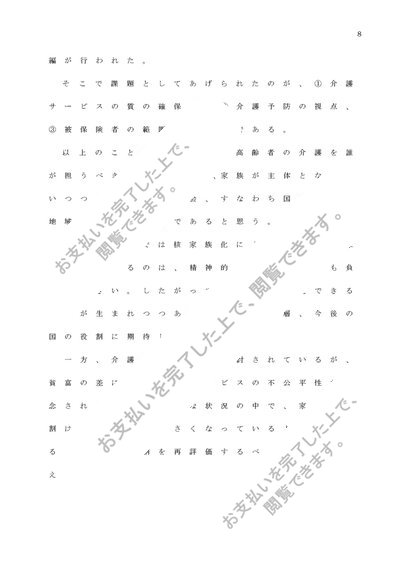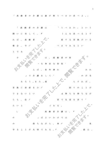文章表現 「高齢者の介護は誰が担うべきか述べよ。」 課題レポートA判定