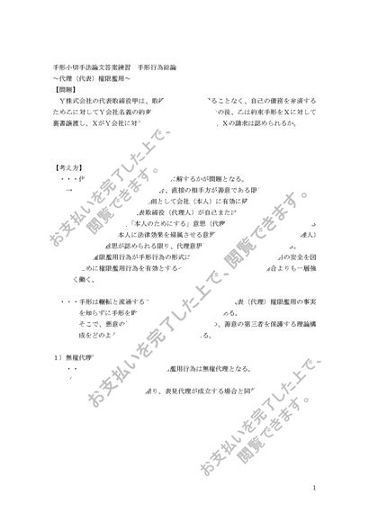 手形小切手法論文答案練習手形行為総論 代理権限濫用