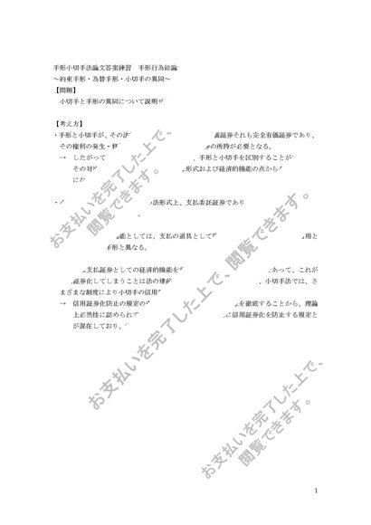 手形小切手法論文答案練習手形行為総論 約束手形、為替手形、小切手の異同