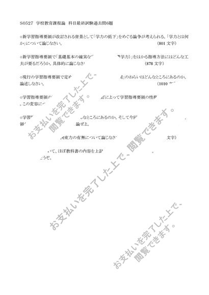 【S0527】【H0320】【Z0207】学校教育課程論科目最終試験6題セット