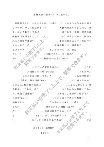 Z1106 道徳教育の研究 リポート(A評価)
