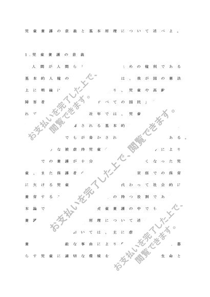 養護原理 「児童養護の意義と基本原理について述べよ。」