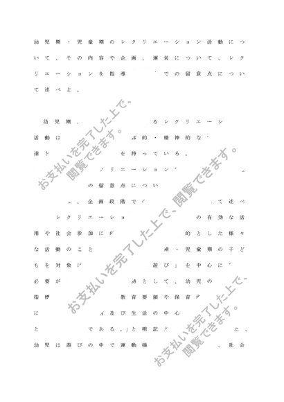 レク実技 2「幼児期・児童期のレクリエーション活動について、その内容や企画、運営について、レクリエーションを指導する上での留意点について述べよ。」