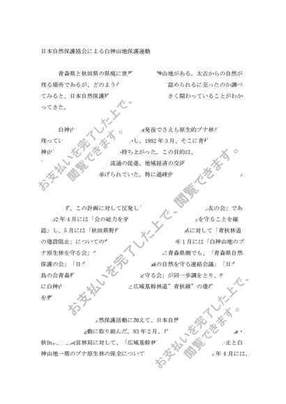 日本自然保護協会による白神山地保護運動