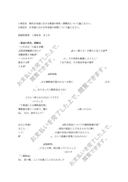 明星大学 国語科教育1・2単位 レポート用要点のまとめ