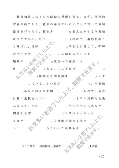 S0532 生徒指導・進路指導の研究(初等) 第1設題 レポート A評価