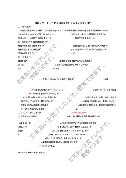 課題レポート、TPPが日本にあたえるインパクトは?