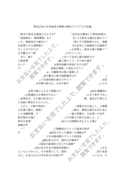 明治以後の日本経済の特徴の要約とアジアとの比較